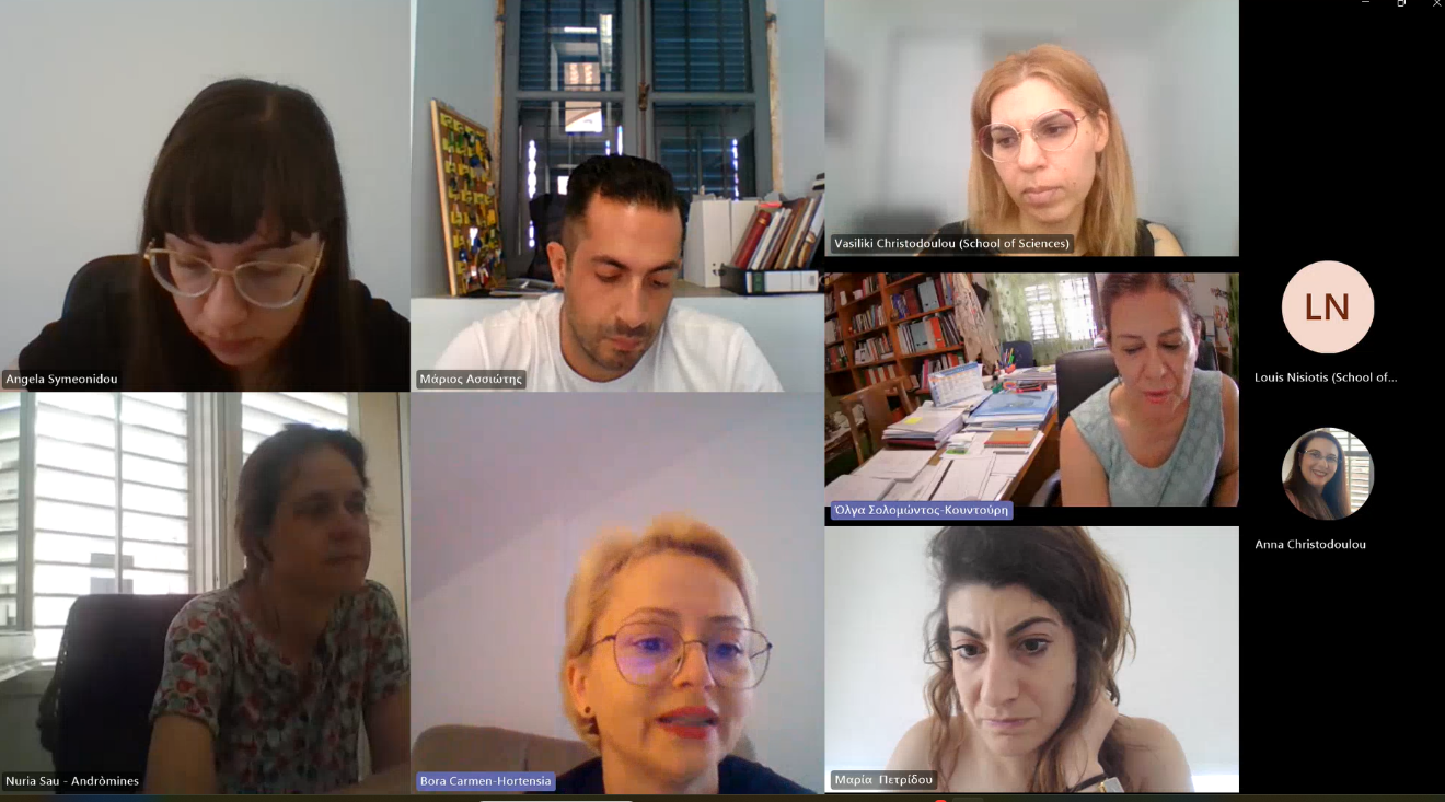 Η διαδικτυακή συνάντηση ξεκίνησε με καλωσόρισμα από την Δρ Όλγα Σολομώντος-Κουντούρη. Ακολούθως η Δρ Σολομώντος-Κουντούρη ενημέρωσε του εταίρους ότι έχει ζητηθεί από το Ίδρυμα Διαχείρισης Ευρωπαϊκών Προγραμμάτων (ΙΔΕΠ) Κύπρου, παράταση του προγράμματος RECOMMIT κατά δύο μήνες και περιμένουμε την απάντηση τους. Αναφέρθηκε ότι η Ελλάδα έχει ξεκινήσει ήδη την εφαρμογή του προγράμματος και βρίσκεται προς το τέλος της. Η Κύπρος έχει επίσης ξεκινήσει την εφαρμογή με δύο συναντήσεις την εβδομάδα στις φυλακές των Βρετανικών Βάσεων και έχουν προγραμματιστεί δύο εκπαιδεύσεις των δεσμοφυλάκων. Η Ρουμανία ξεκίνησε αυτή την εβδομάδα την εφαρμογή και αντιμετώπισε κάποια προβλήματα λόγω του ότι 2 κρατούμενοι δυσκολεύονταν να διαβάσουν μόνοι τους τα ερωτηματολόγια αλλά δεν είχαν καθόλου προβλήματα με το VR. Στην Ισπανία η εφαρμογή κυλάει ομαλά με μοναδικό πρόβλημα ότι ξεκίνησε η εφαρμογή με 28 κρατουμένους και τώρα παρακολουθούν το πρόγραμμα μόνο 19.