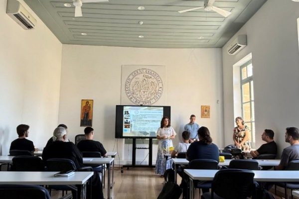 Η ημέρα ολοκληρώθηκε με ξενάγηση στους χώρους της Σχολής – αίθουσες, βιβλιοθήκη, φοιτητική εστία – και με το πρώτο μάθημα: ΘΕΟ.140 Γλωσσικές Δεξιότητες.