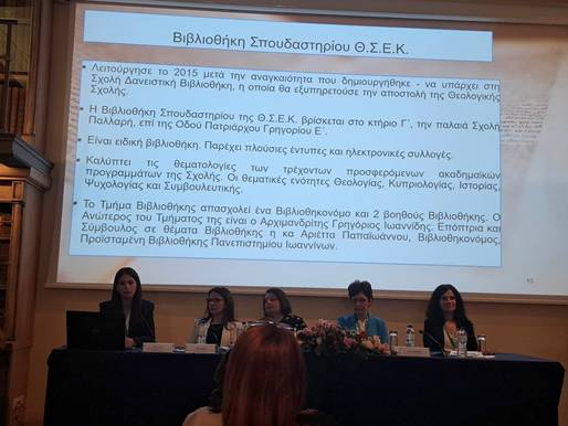H βιβλιοθηκονόμος της Σχολής μας κα Έλενα Ρωτή συμμετείχε στο συνέδριο ‘Χώροι γνώσης και μνήμης: Επαναπροσδιορίζοντας την εικόνα των βιβλιοθηκών, αρχείων και μουσείων σε έναν μεταβαλλόμενο κόσμο’ που έγινε στο Ίδρυμα Αικατερίνης Λασκαρίδη στον Πειραιά από τις 22 μέχρι τις 24 Απριλίου 2026 εκπροσωπώντας τη Σχολή μας. To θέμα της παρουσιάσεώς της ήταν “Η Βιβλιοθήκη Σπουδαστηρίου της Θεολογικής Σχολής Εκκλησίας Κύπρου: από τα πρώτα βήματα στα δέκα χρόνια προσφοράς και εξέλιξης”.