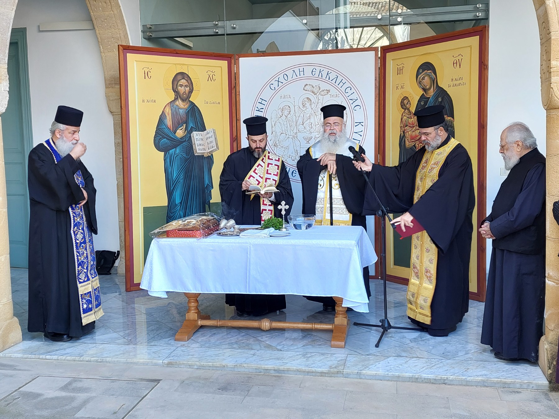 Την Τρίτη, 21 Ιανουαρίου 2025, πραγματοποιήθηκε αγιασμός για την έναρξη των μαθημάτων του εαρινού εξαμήνου του ακαδημαϊκού έτους 2024-2025 από τον Μακαριώτατο Αρχιεπίσκοπο Κύπρου, κ.κ. Γεώργιο, Πρόεδρο του Συμβουλίου της ΘΣΕΚ. Στον αγιασμό παρευρέθηκαν φοιτητές και μέλη του ακαδημαϊκού και διοικητικού προσωπικού της Θ.Σ.Ε.Κ. Στον σύντομο χαιρετισμό του, ο Μακαριώτατος ευχήθηκε καλό και ευλογημένο το νέο έτος 2025 στους φοιτητές και προσωπικό της ΘΣΕK. Ο Μακαριώτατος τόνισε την ανάγκη για πνευματική εγρήγορση και ανανέωση, υπογραμμίζοντας ότι θα πρέπει να δίνεται πάντα προσοχή στα “μένοντα” και όχι στα “ρέοντα”. Επισήμανε, επίσης, το χρέος όλων των Ορθόδοξων Κυπρίων για προσευχή στον Θεό, ώστε η ημικατεχόμενη πατρίδα μας να λυτρωθεί από τα δεινά που την ταλανίζουν. Στην αντιφώνησή του ο Διευθυντής της Σχολής, Πρωτοπρεσβύτερος Κυπριανός Κουντούρης, ευχαρίστησε τον Αρχιεπίσκοπο για την έμπρακτη στήριξή του στο έργο της Σχολής. Τον αγιασμό ακολούθησε κοπή Βασιλόπιτας.