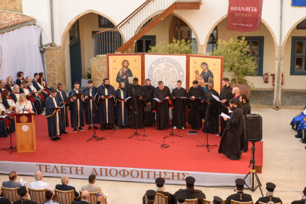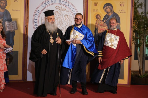 Η τελετή ολοκληρώθηκε με την απονομή των τίτλων σπουδών από τον Μακαριώτατο.